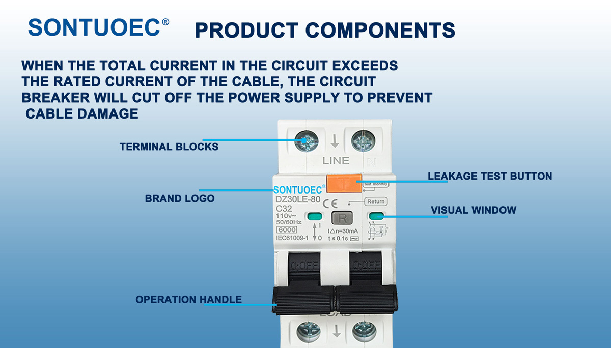 የመጥፋት ጥበቃ: - DZ30LE-80 ቀሪ የአሁኑን (I.E., የደም ማነስ የአሁኑን) የማወቅ ችሎታ አለው. የቀሪው ወቅታዊ ጊዜው ከወረቀት ሰጪው በሚበልጠው ጊዜ, የ DZR30LE-80 ሩቦት የኤሌክትሮኒክ አደጋዎች እና የኤሌክትሪክ እሳቶች ለመከላከል በጣም አጭር በሆነ ጊዜ ውስጥ ወረዳውን ያጠፋል.